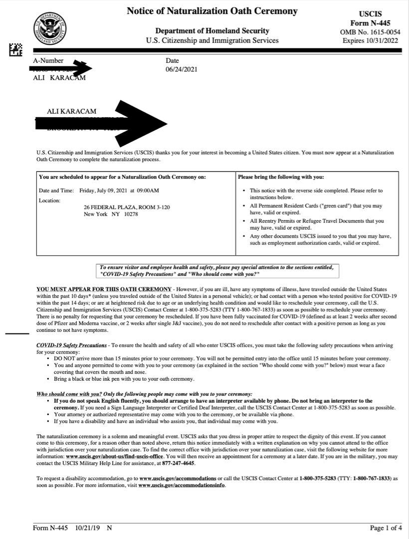 ALI KARACAM IMMIGRATED TO THE UNITED STATES IN 2015. AT THE BEGINNING IT WAS HARD TO SURVIVE. BUT DAY BY DAY HE MET MANY PEOPLE THEY HELPED HIM TO FIND A JOB. HE CONTINUOUSLY STAYED FIVE YEARS AND PASSED CITIZENSHIP EXAM AND GAINED U.S CITIZENSHIP.